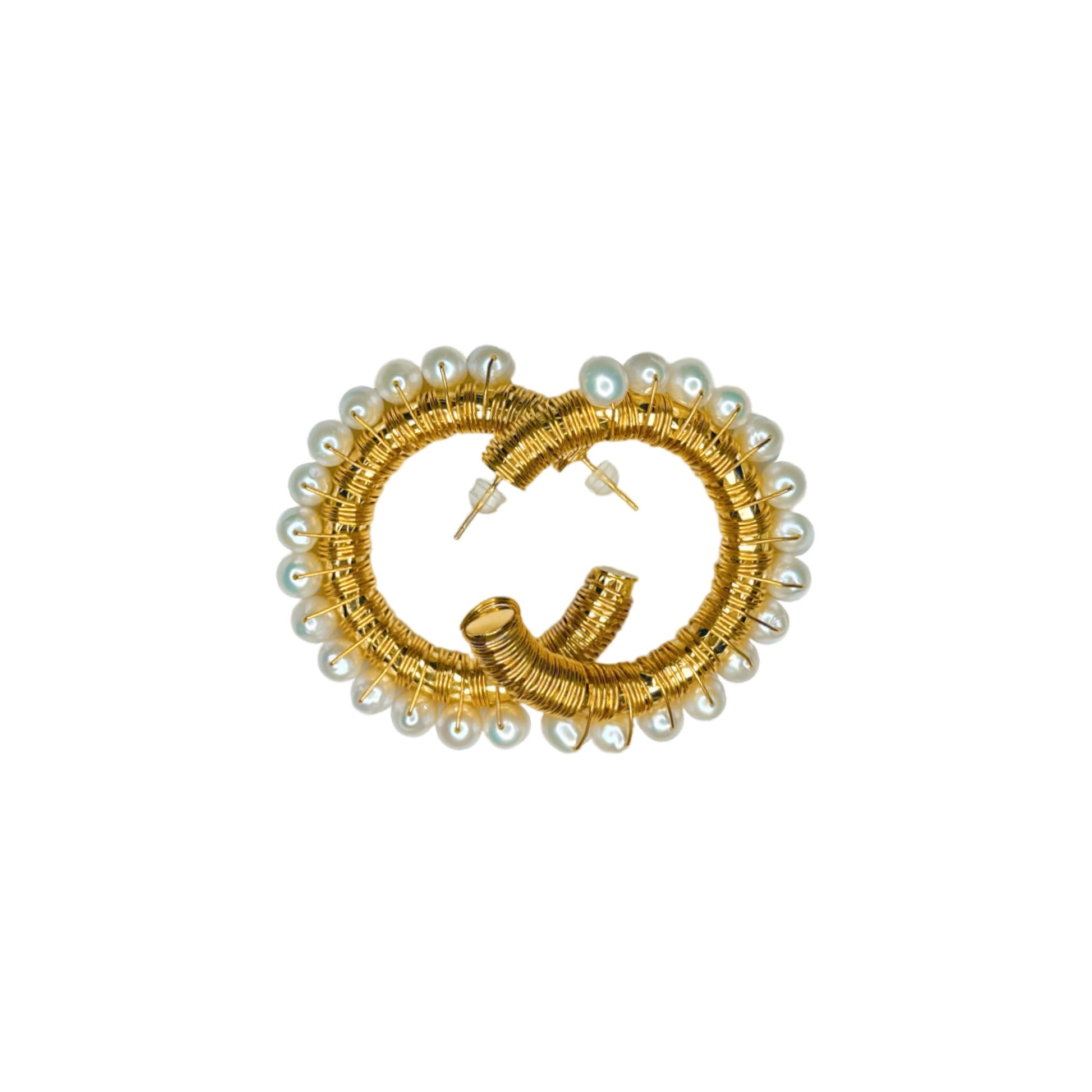 40mm hoops 14k Gold Filled / Stainless Steel hand wrapped with 22k Gold Plated / Silver Plated wire with genuine freshwater Akoya pearls.